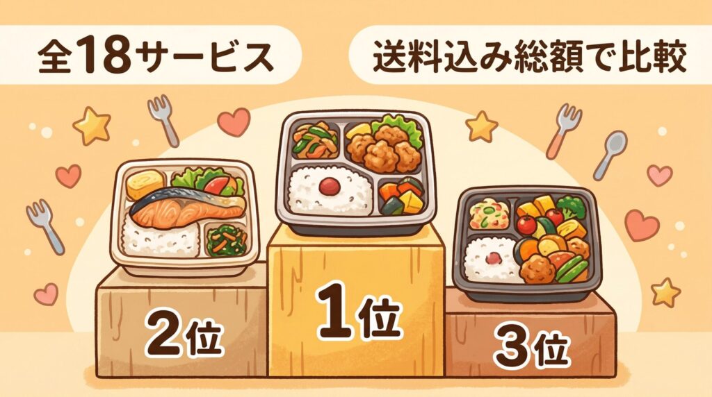 世の中には他にも宅配弁当サービスはありますが、このランキングはこれまで当ブログで取り上げてきたサービスを中心に、公式サイトで料金や特典を直接確認したものを掲載しています。