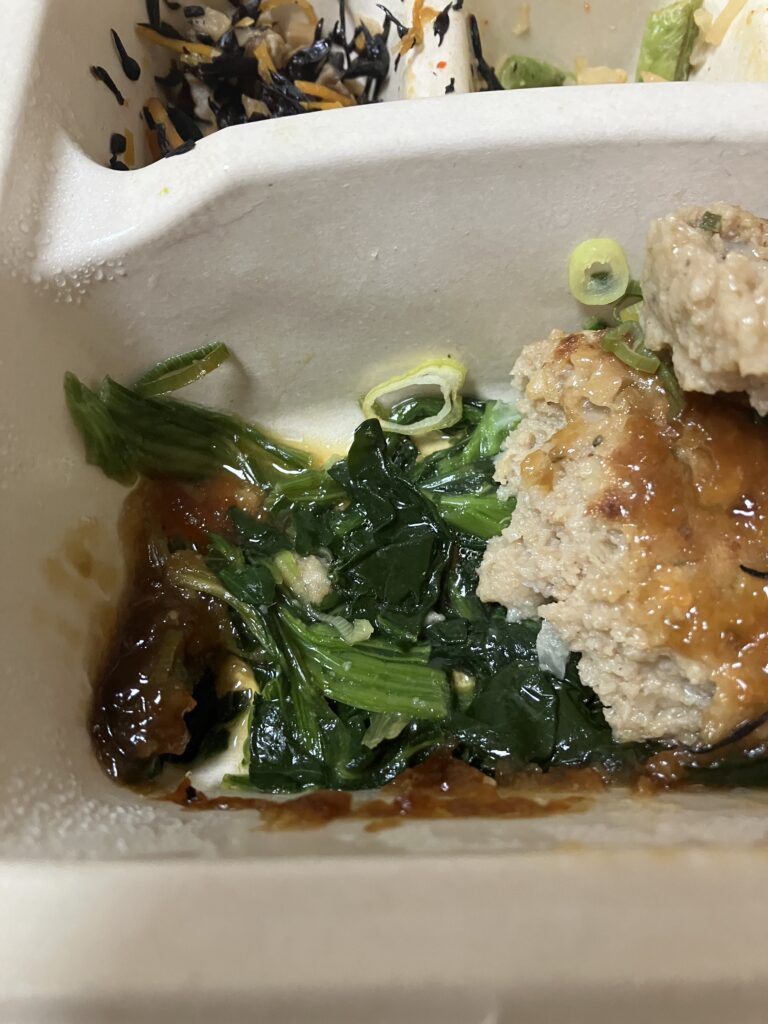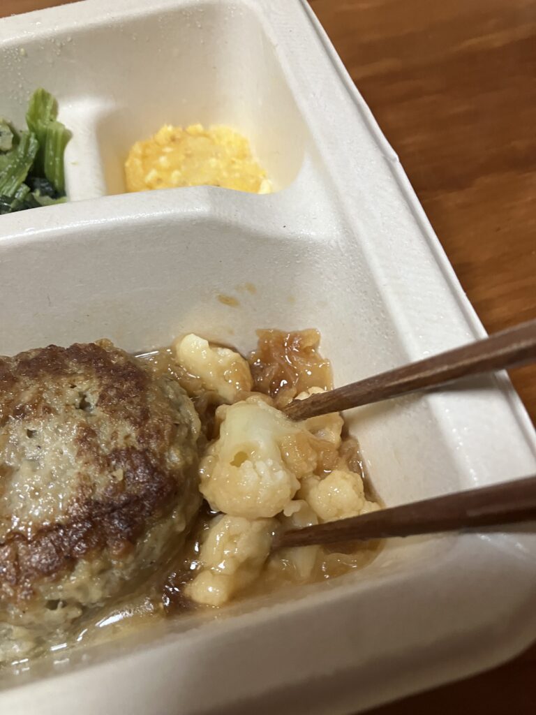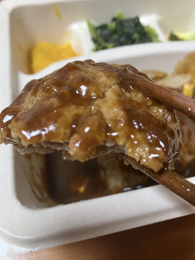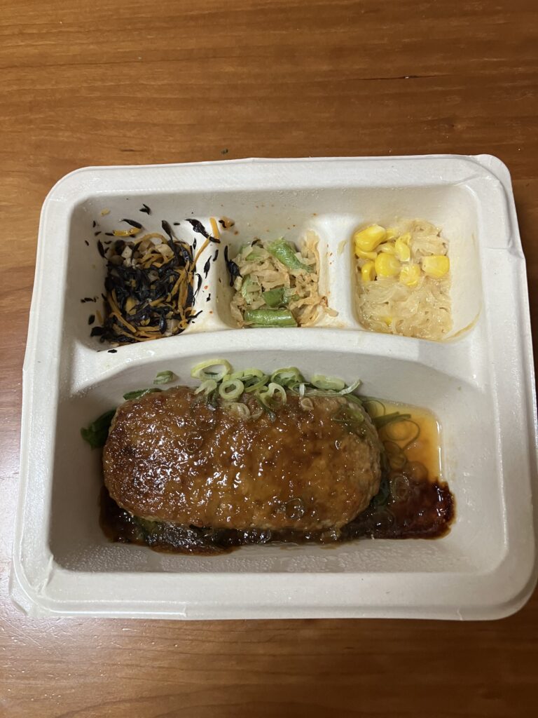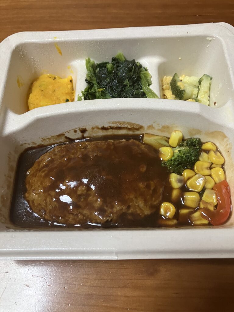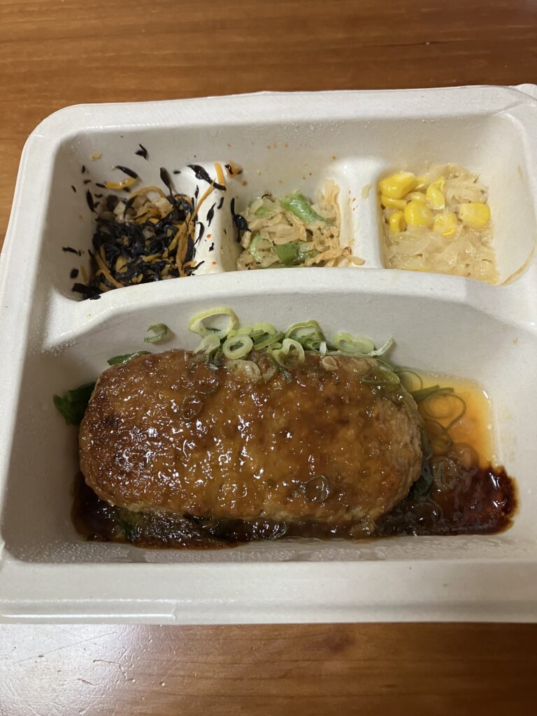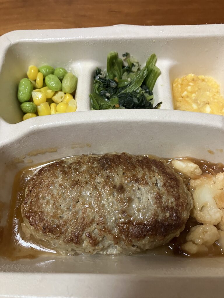 副菜のひじきは、やや量が少なく感じたのは少し残念でしたが、ハンバーグ自体が本当に美味しくて満足感が高いので、「副菜が少ないから」と敬遠するのはもったいないと思います。