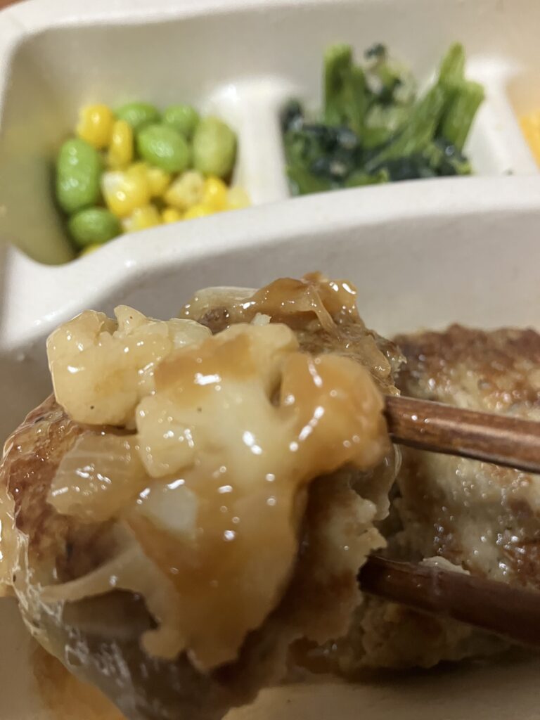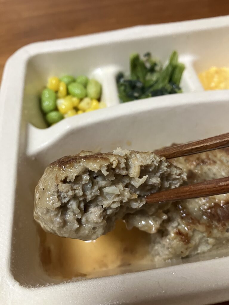 ハンバーグ本体はやわらかすぎず適度な肉感があり、冷凍とは思えない仕上がりでした。
