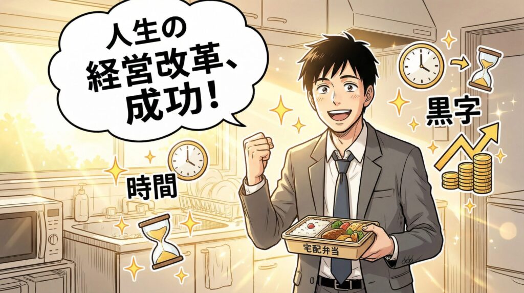 - 平日(疲れている時): 仕事でクタクタな状態で、効率の悪い自炊をするのはやめましょう。それは「赤字事業」です。ここはプロ(宅配弁当)にアウトソーシングして、コストと時間をカットします。