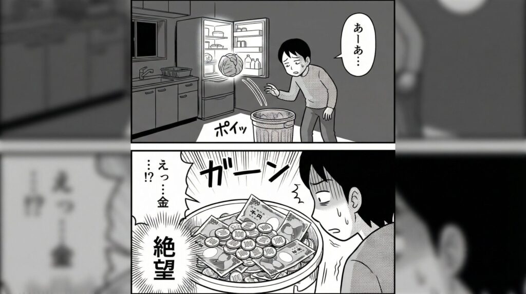 会計上は「現金をドブに捨てた」のと同じ、手痛い特別損失です。一人暮らしで食材を100%使い切るのは、私の長年の一人暮らしの経験上、実は至難の業なのです。
