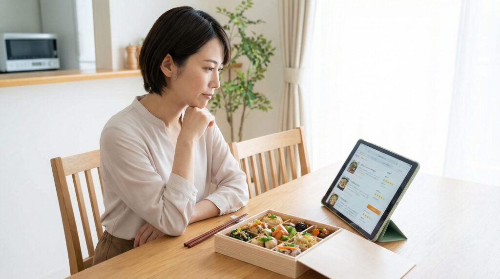 実際に注文する段階になって初めて気づく「システム面」の口コミも重要です。ここでは、他の宅配弁当サービスと比較した際のデメリットも浮き彫りになりました。