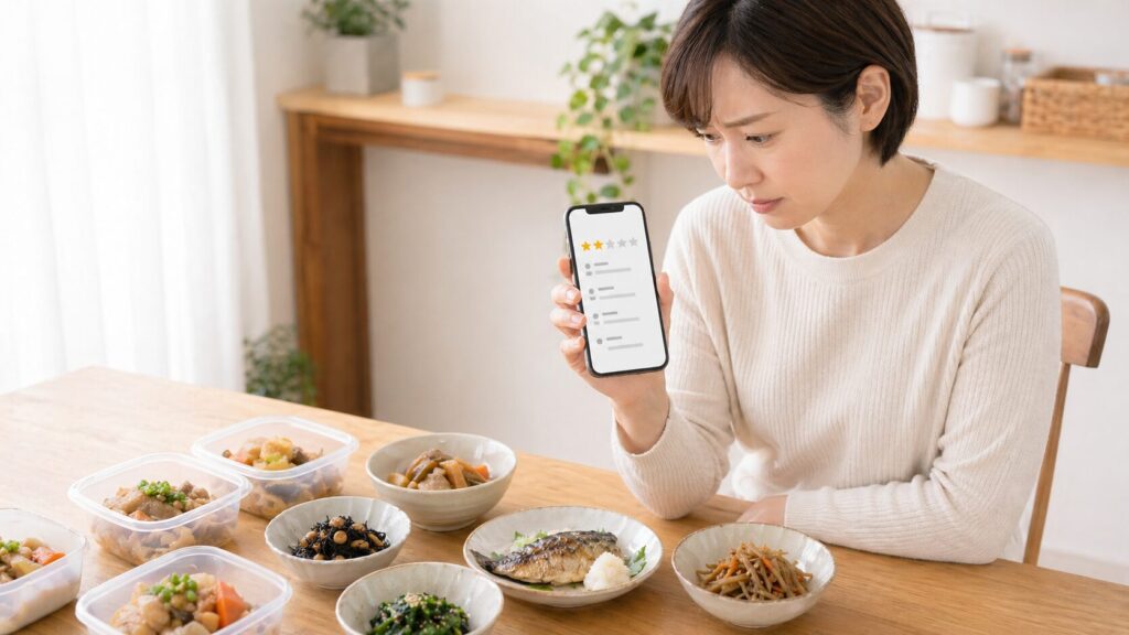 「副菜が薄い」「週によって味にばらつきがある」という声は、手料理ストックの悪い口コミの中で最も多く見られました。