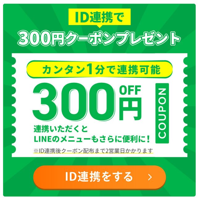 公式LINE友だち追加でもらえる300円クーポン