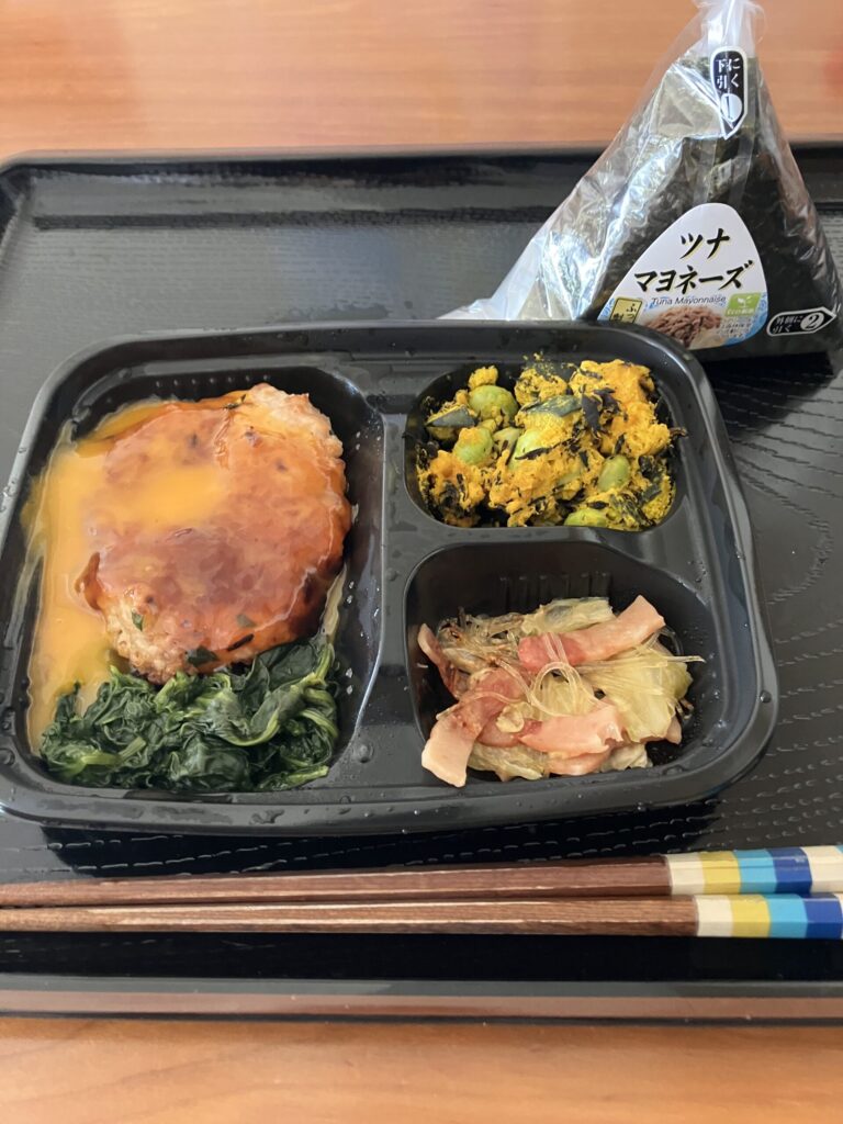 副菜のほうれん草は薄味でやや物足りなかったものの、かぼちゃの甘さが良いアクセントになっていました。