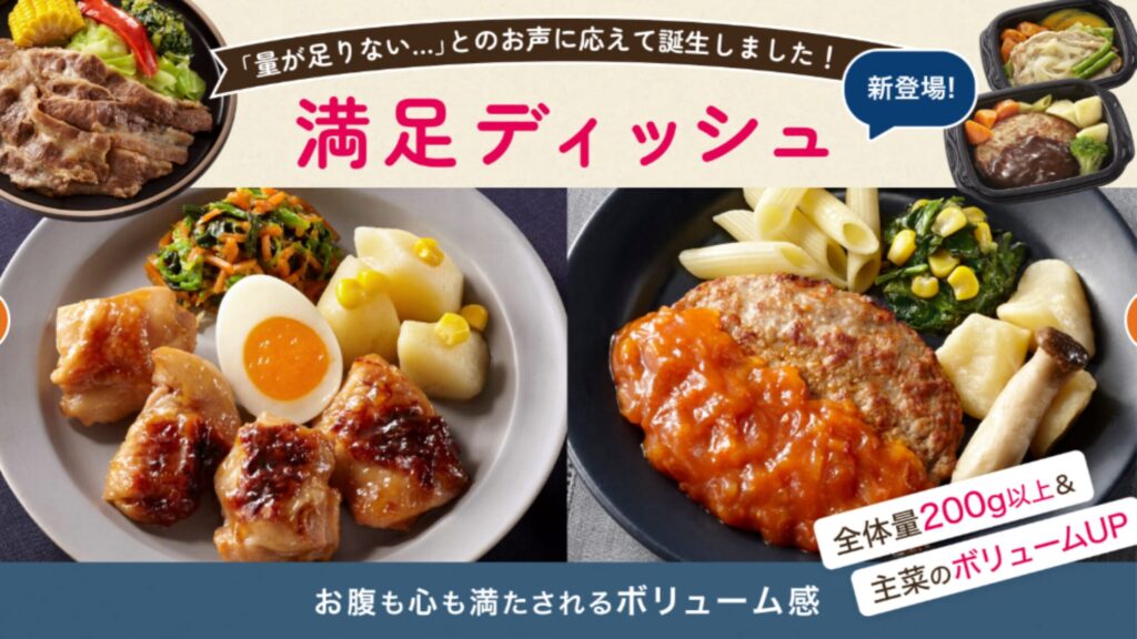 ちなみに今回試したのは「いつでも三菜」ですが、ボリューム重視の方は「いつでも五菜」や、新登場の『満足ディッシュコース』を選ぶことで、より自分に合ったボリュームを選べます。